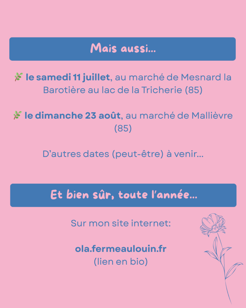 Bien sûr, je suis régulièrement présente aux marchés de Bressuire, Mauléon et Légumes & co dans le bocage bressuirais.
